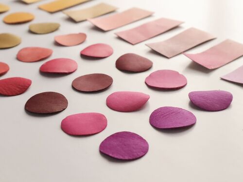 革花の染色に欠かせない「混色」の第一歩。この記事では、クラフト社のおためし染料セットを使って、2色から3色を生み出す実験のような色づくりを紹介。乾燥後の色変化や水加減による発色の違いも解説しています。