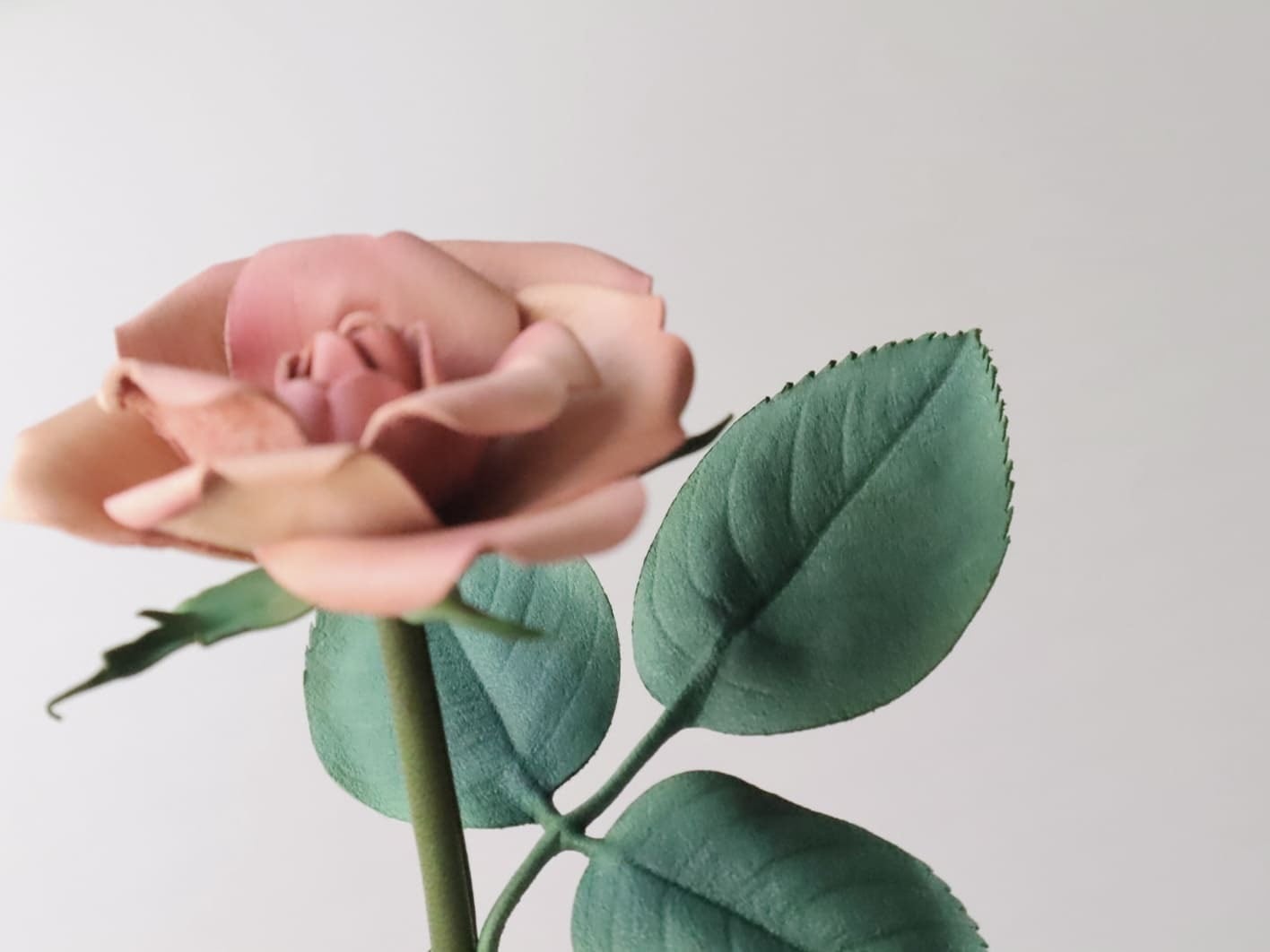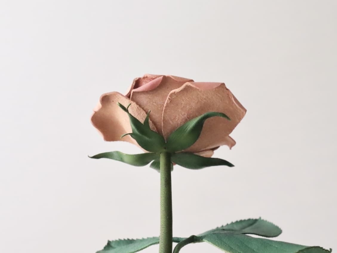 ・花弁だけでは表現できない、ガクと葉を加えた立体的な仕上がり